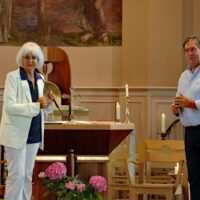 Op 26 juli vierde Paul Sanders dat hij vijftig jaar geleden begon als dirigent van het toen nog aparte (maar wel samenzingende) dames- en herenkoor van de Petrus en Pauluskerk. Sindsdien gebeurde er veel zoals door de verschillende sprekers (Fia Smit, Bertus Rijpstra en Paul zelf) werd gememoreerd. Klik op een van de onderstaande foto’s om de sfeer te proeven tijdens dit memorabele moment. |